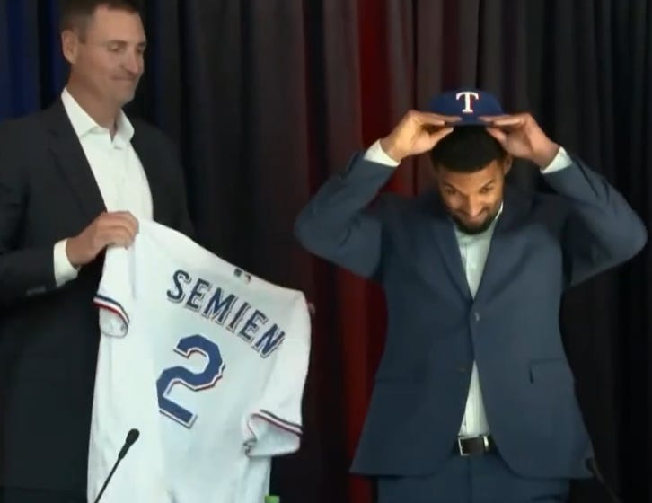 It started with Semien. Seven years. A hundred and seventy-five million dollars. The kind of contract that made you blink twice and check the sender. RAY DAVIS PAID THAT? The immediate assumption was simple: Semien is the new shortstop. The Rangers are back in business.